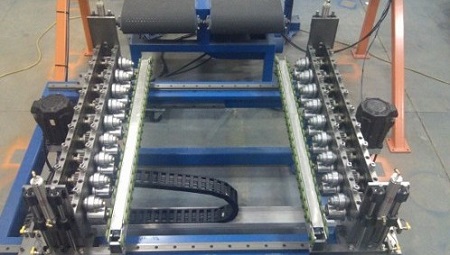 Multiple sets of these machines have been built to uncoil a composite material to a specific length and process the leading & trailing edges.